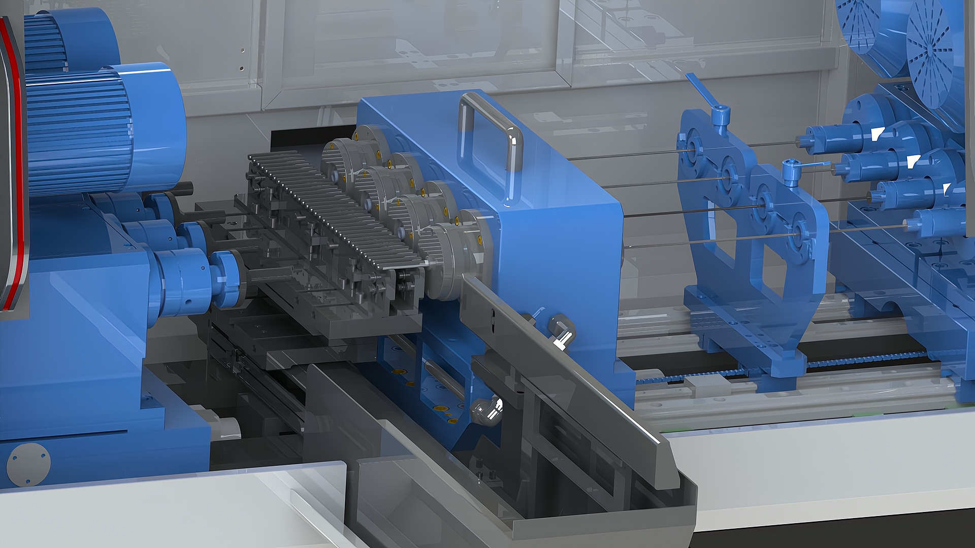簡要說明:臥式機床,含多工位伺服橫移料倉,一次可安裝多達32支工件。伺服橫移倉,配合液壓頂緊結(jié)構(gòu),完成工件的自動夾緊,加工效率高