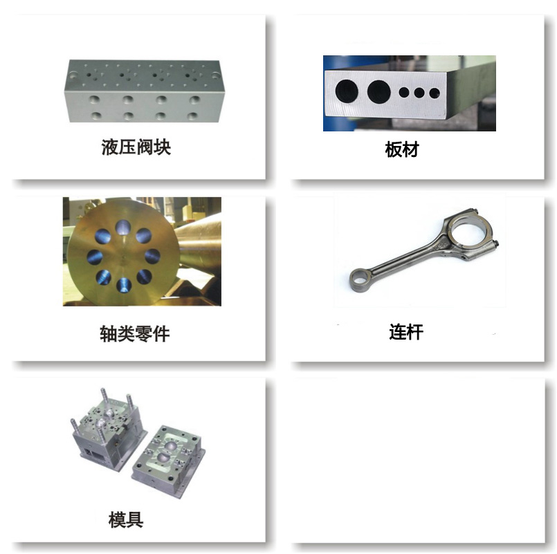 工件裝夾:軸類(lèi)零件,通過(guò)工裝安裝在工作臺(tái)上;板類(lèi)零件可以直接安裝在工作臺(tái)上;壓板 手動(dòng)壓緊。一次裝夾,可完成多個(gè)孔位深孔加工。