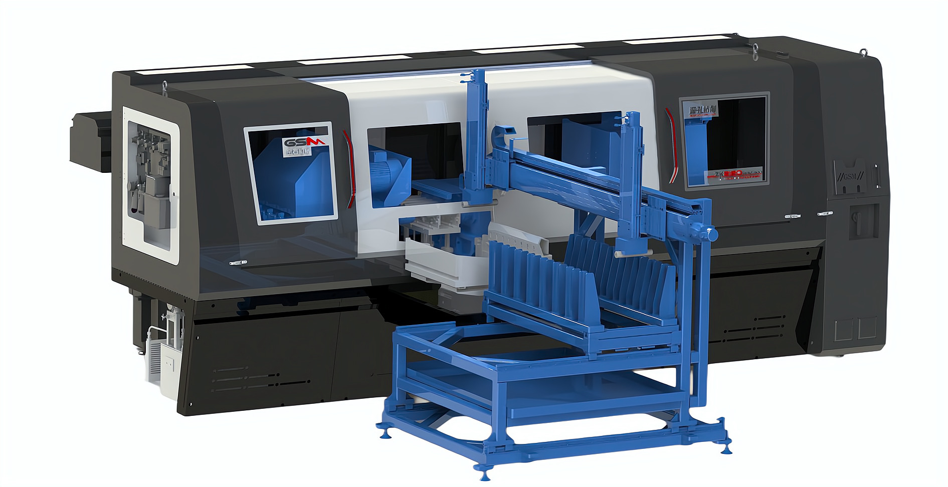 ZK2120×4B/500A 深孔鉆床配置桁架機(jī)械手,加工新能源電機(jī)軸,單機(jī)自動化