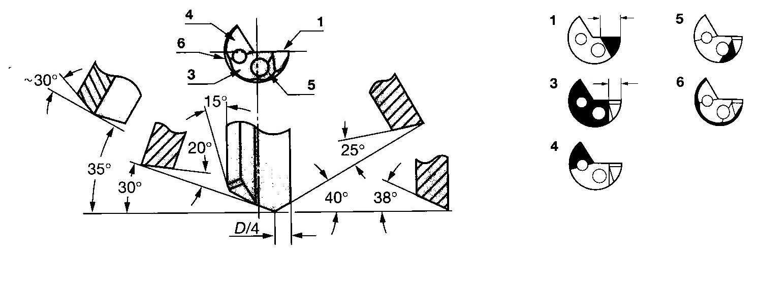 下面,對(duì)不同直徑槍鉆的刃磨角度做簡(jiǎn)略介紹。