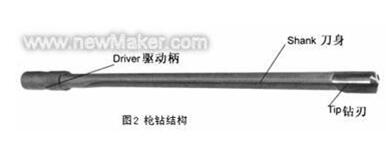 槍鉆因最早用于兵器工業(yè)加工槍管而得名,主要用來加工φ2~φ20mm小徑深孔,是目前深孔鉆削中的一種優(yōu)質(zhì)高效工具。美國鉆科公司(DRILLMASTERS)公司作為世界上最主要的孔加工旋轉(zhuǎn)切削刀具供應(yīng)商之一,在槍鉆的研發(fā)和制造方面具有多年的成功經(jīng)驗(yàn),其所研發(fā)的刀具具有切削效率高、加工精度好和刀具壽命長等特點(diǎn),已廣泛應(yīng)用于汽車工業(yè)、航天工業(yè)、結(jié)構(gòu)建筑工業(yè)、醫(yī)療器材工業(yè)、模具/刀具/冶金工業(yè)及油壓、空壓工業(yè)等制造業(yè)領(lǐng)域。